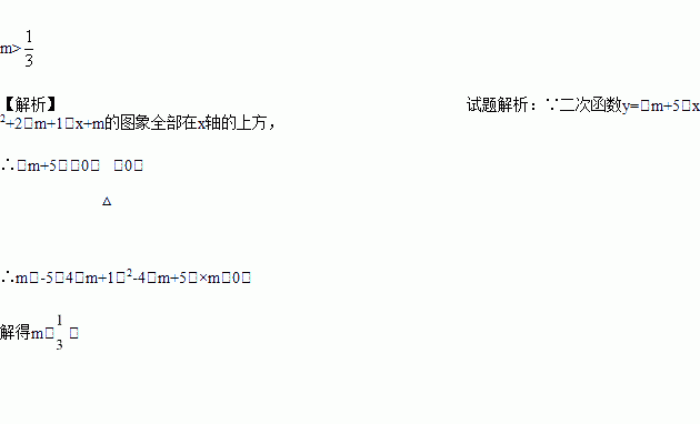 若二次函数的图象全部在轴的上方,则m的取值范围是__________.