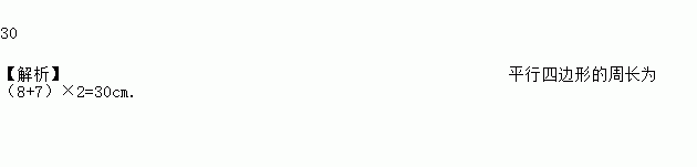 已知□ABCD中,AB=8 cm,BC=7 cm,则此平行四边形的周长为_________cm.