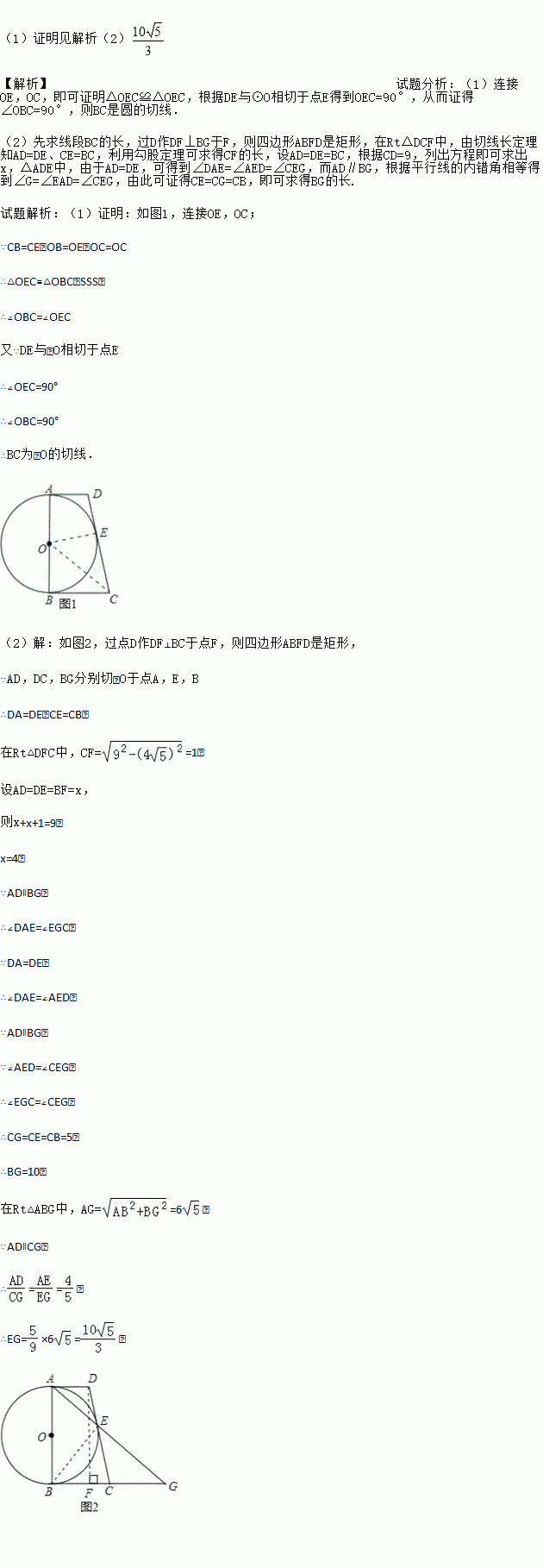(1)求证:BC为⊙O的切线;