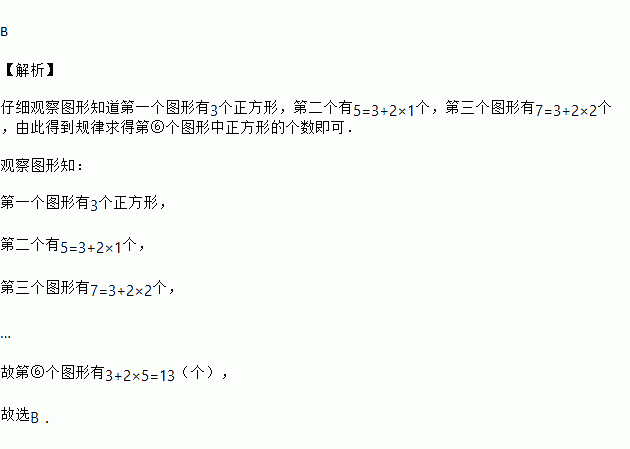 下列图形都是由同样大小的黑色正方形纸片组成,其中第①个图中有3张黑色正方形纸片,第②个图中有5张黑色正方形纸片,第③个图中有7张黑色正方形纸片,…,按此规律排列下去第⑥个图中黑色正方形纸片的张数为( )