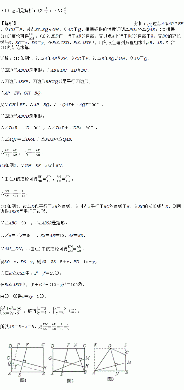 (1)在矩形ABCD中,EF⊥GH,EF分别交AB,CD于点E,F,GH分别交AD,BC于点G,H.,求证:
