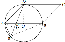 分析:(1)连结OD,根据圆周角定理得∠AOD=2∠AED=90°,则OD⊥AB,再根据平行四边形的性质得AB∥DC,所以OD⊥DC,则根据切线的判定定理得到CD为⊙O的切线;