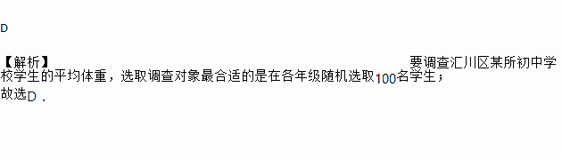 要调查汇川区某所初中学校学生的平均体重,选取调查对象最合适的是( )