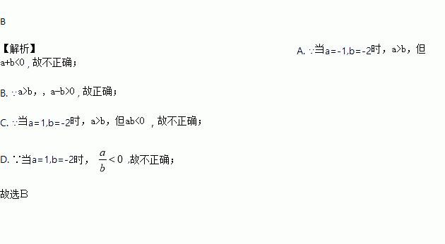 A. a+b>0 B. a-b<0 C. a-b>0 D.