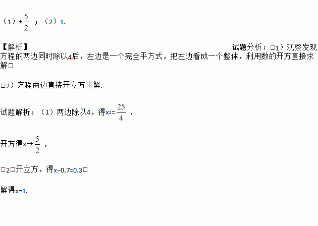 解方程:(1)4=25 (2).