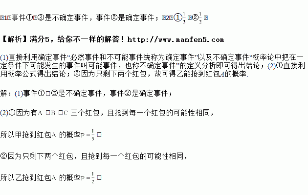 (1)判断下列事件中,哪些是确定事件,哪些是不确定事件?