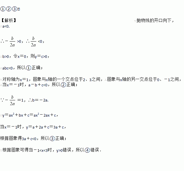 二次函数y=ax2+bx+c(a,b,c是常数,a≠0)图象的对称轴是直线x=1,其图象的一部分如图所示,对于下列说法:①abc<0;②a﹣b+c<0;③3a+c<0;④当﹣1<x<3时,y>0.其中正确的是______(把正确说法的序号都填上)