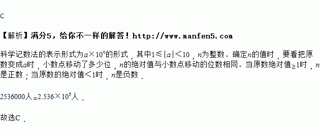 A. 2.536×104人 B. 2.536×105人 C. 2.536×106人 D. 2.536×107人