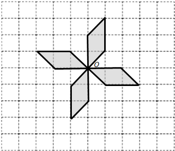 14.利用线段、角等基本图形,借助平移旋转或对称、设计一个图案、并简述你的设计意图.分析 先利用线段、角等基本图形,画出一个平行四边形,然后根据旋转图形的特点,绕点O顺(或逆)时针旋转90°画出一个平行四边形,再旋转90°画出一个平行四边形,再旋转90°画出一个平行四边形,即可成为一个美丽的图案.