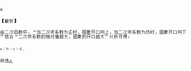 如图,四个二次函数的图像中,分别对应的是①y = ax2;②y = bx2;③y = cx2; ④y = dx2.