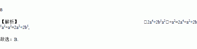 B 【解析】(2a4+2b5a2)÷a2=2a4÷a2+2b5a2÷a2=2a2+2b5, 故选:B.