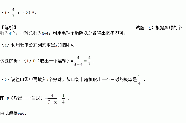 已知一个口袋装有7个只有颜色不同、其它都相同的球,其中3个白球、4个黑球.