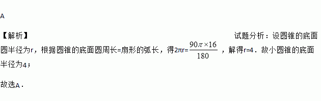 在长方形ABCD中AB=16,如图所示裁出一扇形ABE,将扇形围成一个圆锥(AB和AE重合),则此圆锥的底面半径为( )