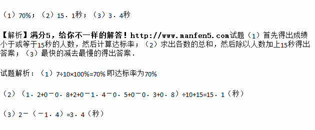 某班10名男同学参加100米达标测验,成绩小于或等于15秒的达标,这10名男同学成绩记录如下(其中超过15秒记为“+”,不足15秒记为“﹣”):