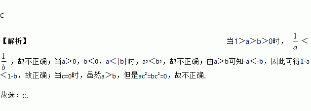 C. 若a>b,则1-a<1-b D. 若a>b,ac2>bc2