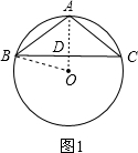 分为两种情况:如图1,当O在△ABC外部时,连接AO,交BC于D,连接OB,