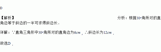 有一直角三角板,30°角所对直角边长是6㎝,则斜边的长是( )