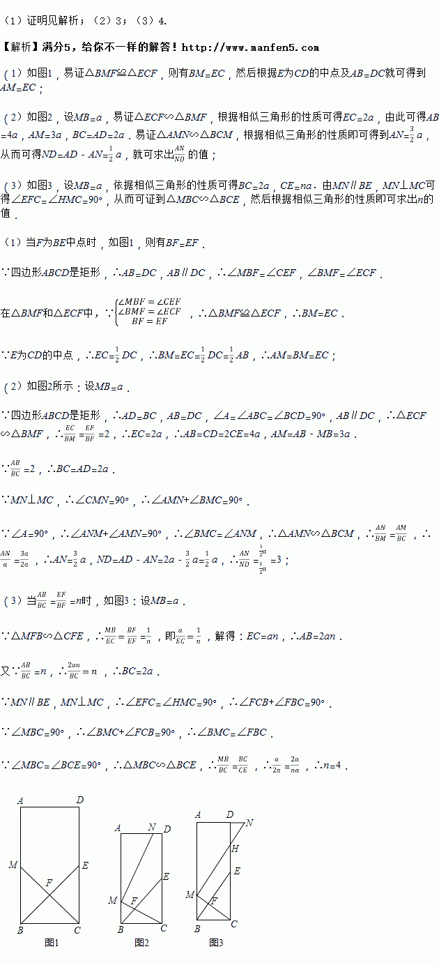 如图,在矩形ABCD中,E为CD的中点,F为BE上的一点,连结CF并延长交AB于点M,MN⊥CM交射线AD于点N.