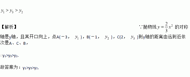 已知点A(-3, ),B(-1, ),C(2, )在抛物线上,则, , 的大小关系是 _______.(用“”连接)