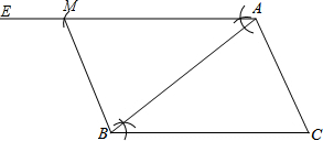分析:根据作一角等于已知角得出∠BAE,进而截取AM=BC,利用平行四边形的判定与性质得出BM与AC的关系.