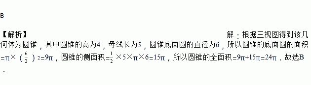如图是某几何体的三视图及相关数据,则该几何体的全面积是 ( )