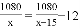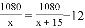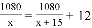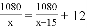 某单位向一所希望小学赠送1080 件文具,现用 A、B 两种不同的包装箱进行包装,已知每个B型包装箱比 A型包装箱多装15件文具,单独使用B型包装箱比单独使用A型包装箱可少用12个.设B型包装箱每个可以装x件文具,根据题意列方程为( )