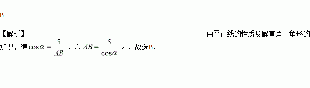 如图,先锋村准备在坡角为的山坡上栽树,要求相邻两树之间的水平距离为5米,那么这两树在坡面上的距离AB为( )