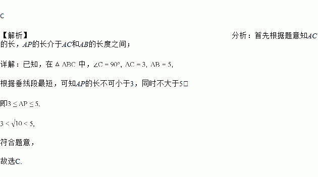 如图,△ABC中,∠C=90°,AC=3,AB=5,点P是边BC上的动点,则AP长可能是( )