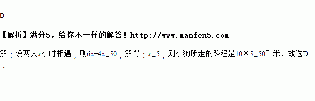 千米/时奔向小刚,碰到小刚后奔向小明,碰到小明后奔向小刚…一直到两人相遇,小狗共跑了多少路程?( )![]()
