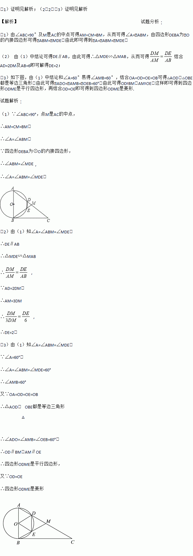 (3)连接OD,OE,当∠A的度数为60°时,求证:四边形ODME是菱形.