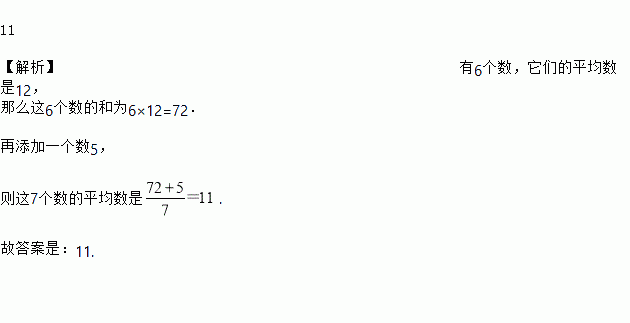 有6个数,它们的平均数是12,再添加一个数5,则这7个数的平均数是_____.