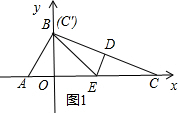分析 (1)根据直线的解析式先找出点B的坐标,结合图象可知当t=$\sqrt{5}$时,点C′与点B重合,通过三角形的面积公式可求出CE的长度,结合勾股定理可得出OE的长度,由OC=OE+EC可得出OC的长度,即得出C点的坐标,再由勾股定理得出BC的长度,根据CD=$\frac{1}{2}$BC,结合速度=路程÷时间即可得出结论;