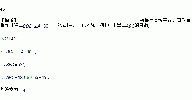 如图,在中,点、分别在、上,且//,,,则∠ABC=________.