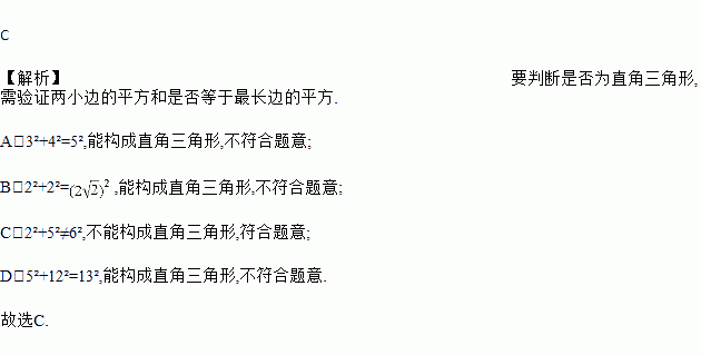 A. 3cm,4cm,5cm B. 2cm,2cm,2cm C. 2cm,5cm,6cm D. 5cm,12cm,13cm