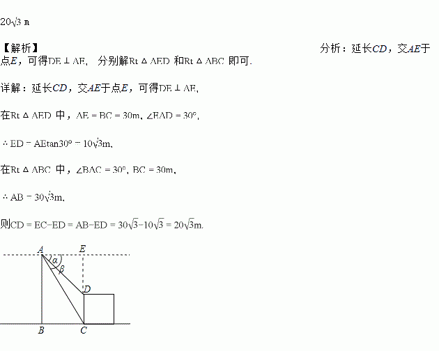 如图,两座建筑物的水平距离BC=30m,从A点测得D点的俯角α为30°,测得C点的俯角β为60°,求这两座建筑物的高度.