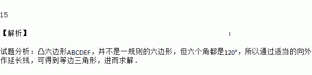 如图,一个六边形的六个内角都是120°,AB=1,BC=CD=3,DE=2,求该六边形的周长.