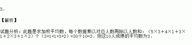 某次能力测试中,10人的成绩统计如表,则这10人成绩的平均数为 .