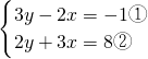 ①×3+②×2,得13y=13,