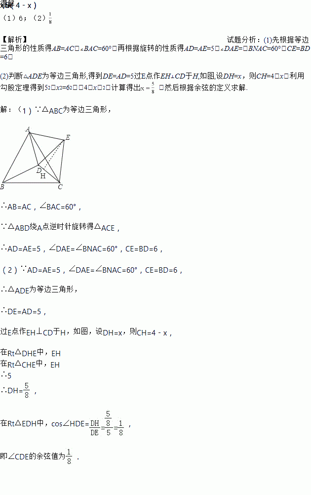 如图,在等边△ABC 内有一点D,AD=5,BD=6,CD=4,将线段AD绕点A旋转到AE,使∠DAE=∠BAC,连接EC.