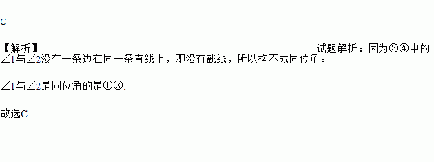 已知如图①~④,其中∠1与∠2是同位角的有( )