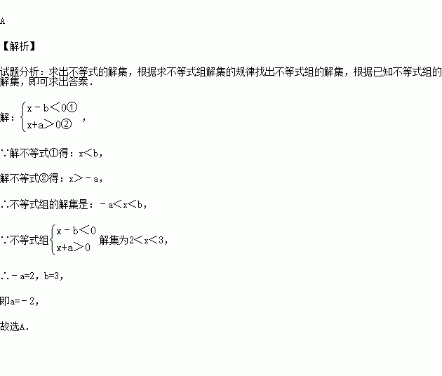如不等式组解集为2<x<3,则a,b的值分别为( )