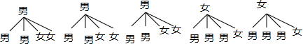 解答 解:(1)抽取1名,恰好是男生的概率=$\frac{3}{5}$,