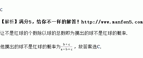 小伟向一袋中装进a只红球,b只白球,c只黑球,它们除颜色外,无其他差别.小红从袋中任意摸出一球,问他摸出的球不是红球的概率为( )
