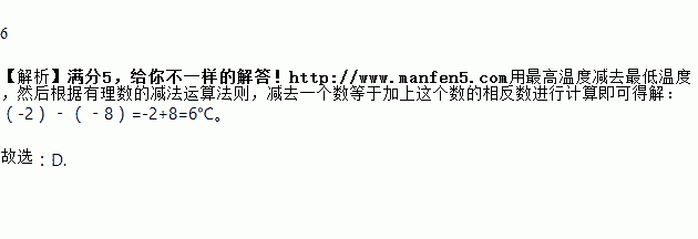 某地某天的最高气温为﹣2℃,最低气温为﹣8℃,这天的温差是________℃.