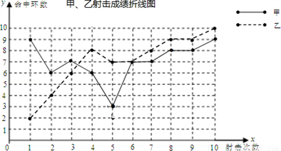 为了从甲、乙两名选手中选拔出一名参加射击比赛,现对他们的射击水平进行一次测验,两个人在相同条件下各射靶10次,为了比较两个人的成绩,制作了如下统计图表:
