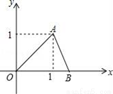 如图,△AOB是等腰三角形,OA=OB,点B在x轴的正半轴上,点A的坐标是(1,1),则点B的坐标是__.