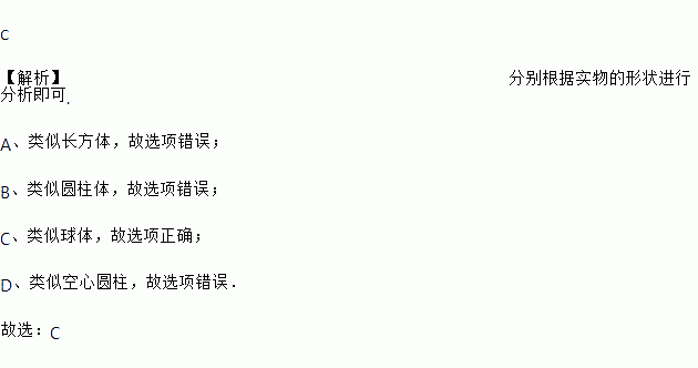 在下图所示立体图形中,(1)球体有____;(2)柱体有____;(3)锥体有____.