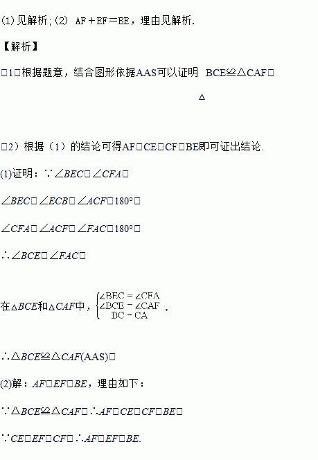 (1)求证:△BCE≌△CAF;
