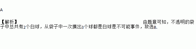 不透明的袋子中装有形状、大小、质地完全相同的6个球,其中4个黑球、2个白球,从袋子中一次摸出3个球,下列事件是不可能事件的是( )