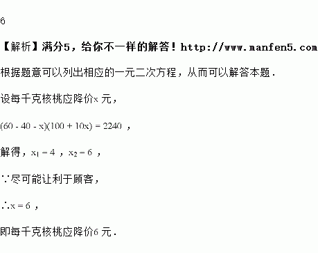 元,同时尽可能让利于顾客,每千克核桃应降价多少元?![]()